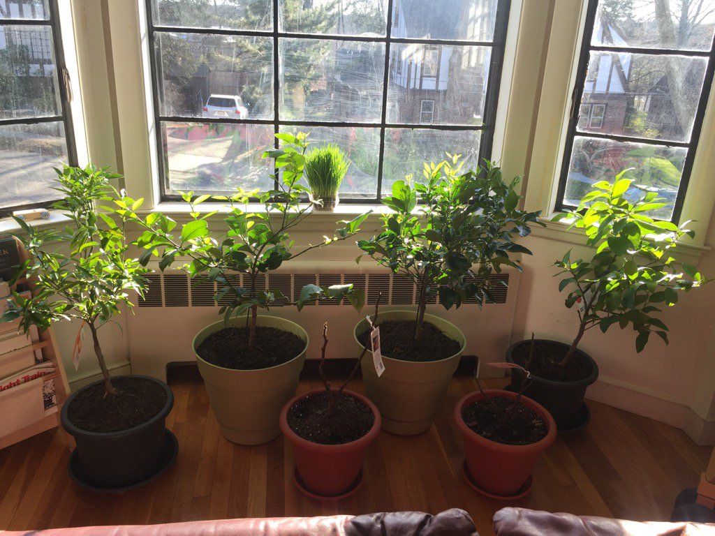 All four dwarf citrus about to bloom = peak indoor orchard bouquet: lemon, orange, mandarin, and lime...!