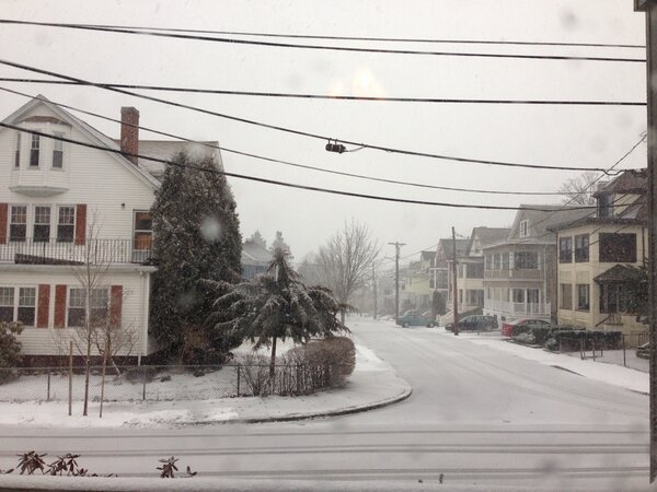 Steady snow now – just starting to stick. Wind picking up.