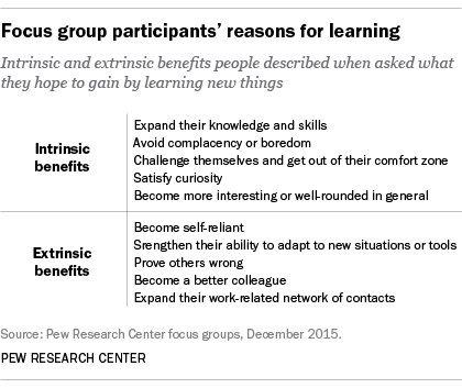 RT @lrainie: Why people like to learn — the intrinsic and extrinsic reasons. From @FactTank pewrsr.ch/1UMYe1W