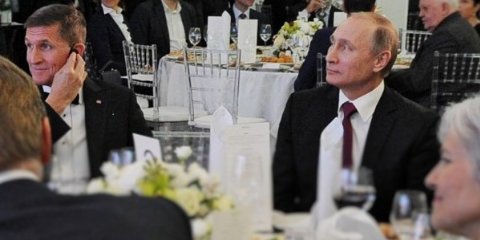 Trump’s National Security Adviser sitting next to Putin at the @RT_com gala
